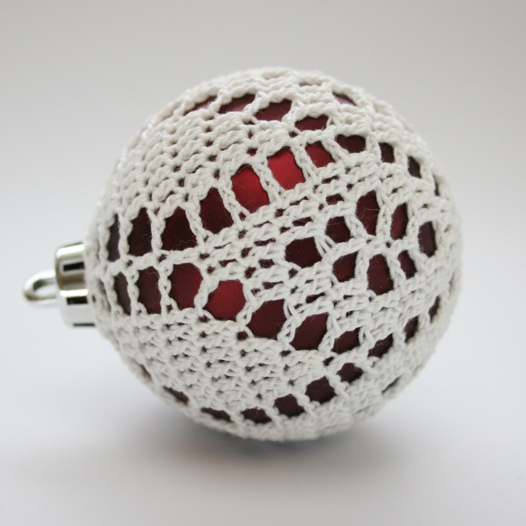 It is very important to have the right gauge so that the crochet cover fits the bauble as it should. It is possible to use a different yarn and/or a larger hook to make covers for larger baubles.
